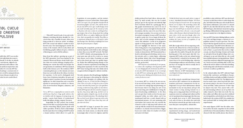 Asking someone “Why are you creative?” is as good as asking: “What makes you tick?”, “How do you do what you do?” or “What are you?”. If you are asking a person who has produced a particularly rich and fascinating body of work, who is honest and has spent some time thinking about themselves and what they do, then their answers can be both illuminating, inspiring and often surprising. If the subject happens to be a multinational corporation rather than an individual then you would expect the answers to become fractured and dissonant; diluted “corpspeak”. But MTV is not a normal multinational corporation. MTV is an idea, it is an attitude – it even has a generation named after it. Despite all its growth, MTV strayed little from the cutting edge – in its own mind at least – and made being new, fresh and always first through the patronage of new creative talent the key to its success.