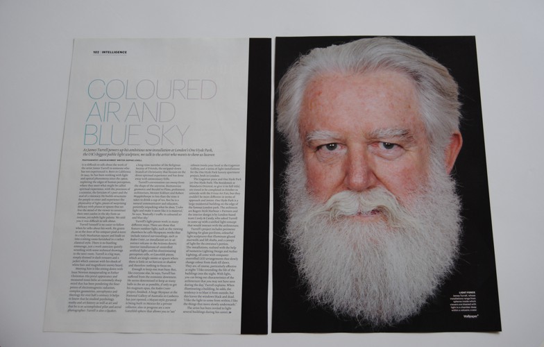 It is difficult to talk about the work of the artist James Turrell to someone who has not experienced it. Born in California in 1943, he has been working with light and optical phenomena since the 1960s, exploring the edges of human perception, where they meet what might be called spiritual experience, with the precision of a scientist, the lyricism of a poet and the zeal of a visionary. He builds structures for people to enter and experience the physicality of light, pieces of surprising delicacy with planes, fields or spaces that set free the mind of the viewer to construct their own castles in the sky from and intense, yet subtle photon palette. We told you it was difficult to talk about.